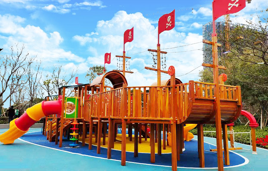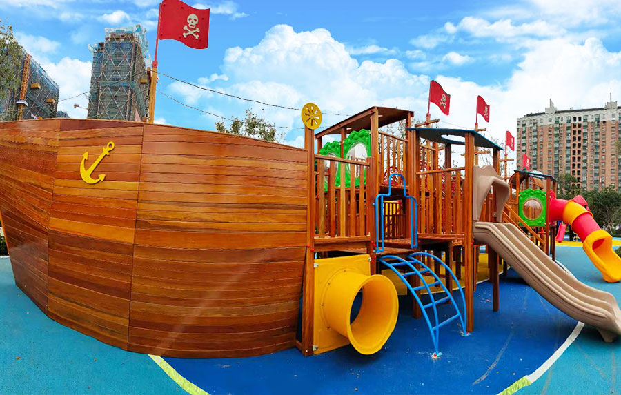 非标木制滑梯组合案例采用海盗船的设计主体为原型设计,增加了大型滑梯组合以及攀爬、钻洞等功能,整个主体设备采用木制结构,leyu·乐鱼(中国)体育游乐生产的木制游乐设备具有颜色艳丽、外观漂亮,实用性强、经久耐用、安全性能好等特点,为小朋友的玩耍提供了一个很好的场所。