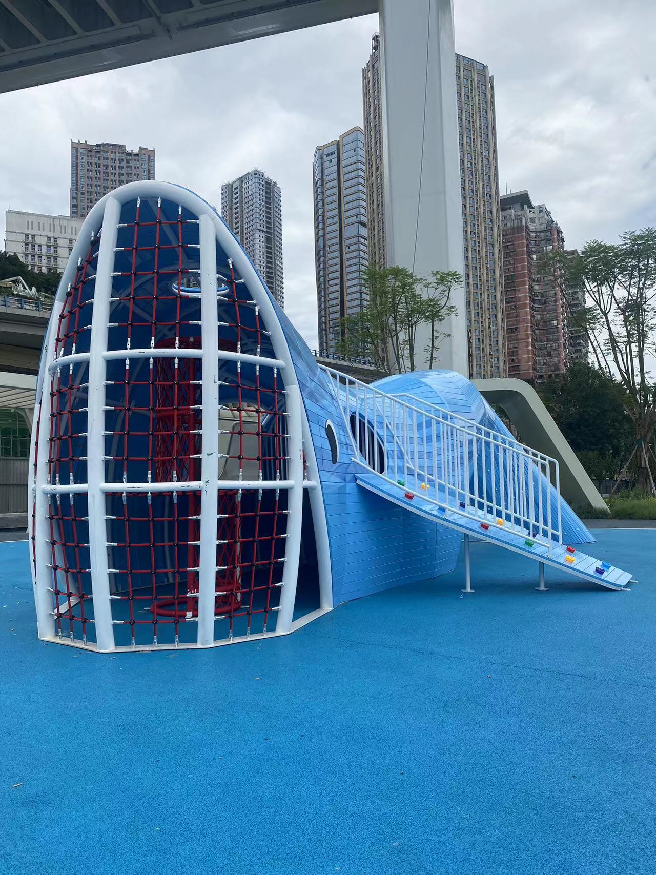 重庆市珊瑚公园是一个公益性的,专门为该区域游玩的人群提供休闲、娱乐的场所,此次选用的游乐设备是leyu·乐鱼(中国)体育游乐自助研发和设计的以大鲨鱼为主的非标定制设备,具备了攀爬网、攀爬墙、钻洞、不锈钢滑梯等功能。