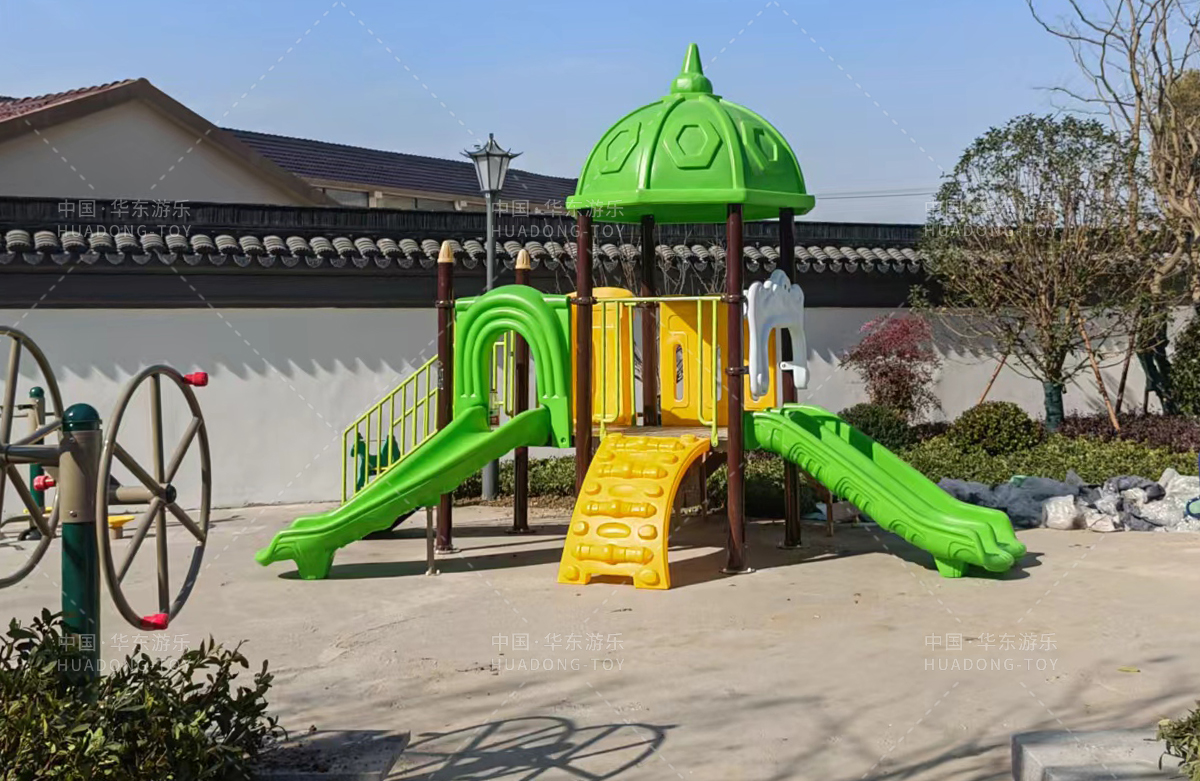 常州市桃花院子选用的是leyu·乐鱼(中国)体育游乐自主研发和设计的别墅屋系列组合滑梯,该滑梯采用滚塑一体成型,具有颜色艳丽、使用寿命长等特点,同时为了更好的为生活在该小区的人们服务,还设置了各种类型的健身器,以及小朋友喜欢的儿童跷跷板、儿童秋千和传声筒等游乐设备,不仅丰富了小区的生活,也为小朋友的玩耍提供了一个很好的场所。