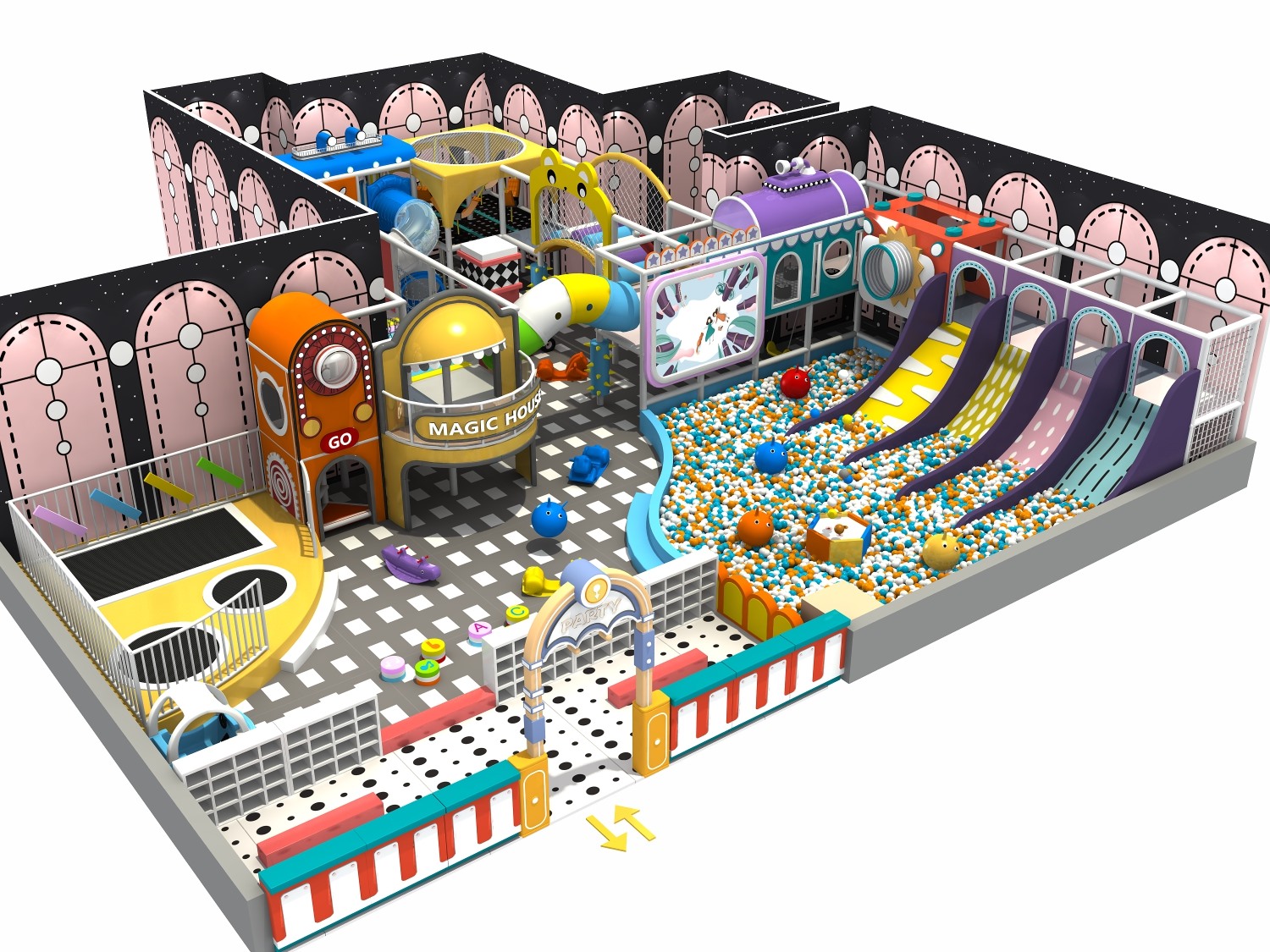• 室内淘气堡又称室内儿童乐园,是针对儿童生理能力与心理特点喜欢钻、爬、滑、滚、晃、荡、跳、摇等玩耍动作而设计的综合性室内休闲娱乐场所。leyu·乐鱼(中国)体育游乐淘气堡项目具有多样性、互动性和安全性的特点,儿童在玩乐的同时能培养独立的个性,团队协作能力,沟通能力、克服困难、积极进取的精神,锻炼身体、健脑益智。